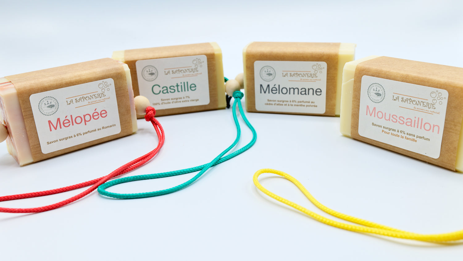Retrouvez toute notre gamme de savons à suspendre artisanaux biologiques pour l'accrocher et le laisser sécher dans toutes vos pièces d'eau